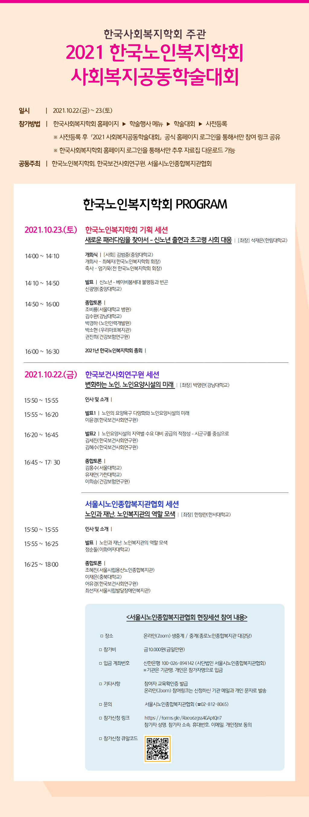 2021 사회복지 공동학술대회 한국노인복지학회세션 안내