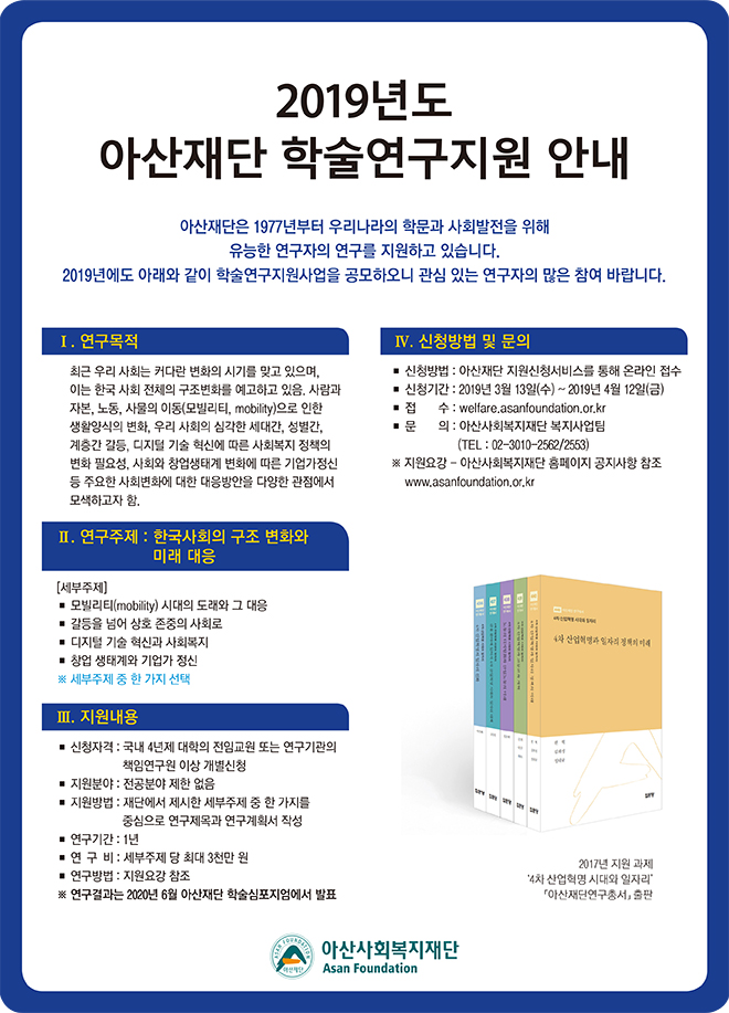 2019년도 아산재단 학술연구지원 안내
